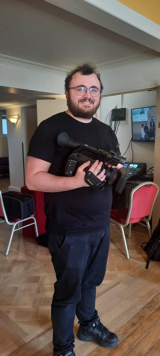 Emilien Ratte, salarié dans la société Audio V Com depuis 2021 fait partie de l'équipe des techniciens audiovisuels.